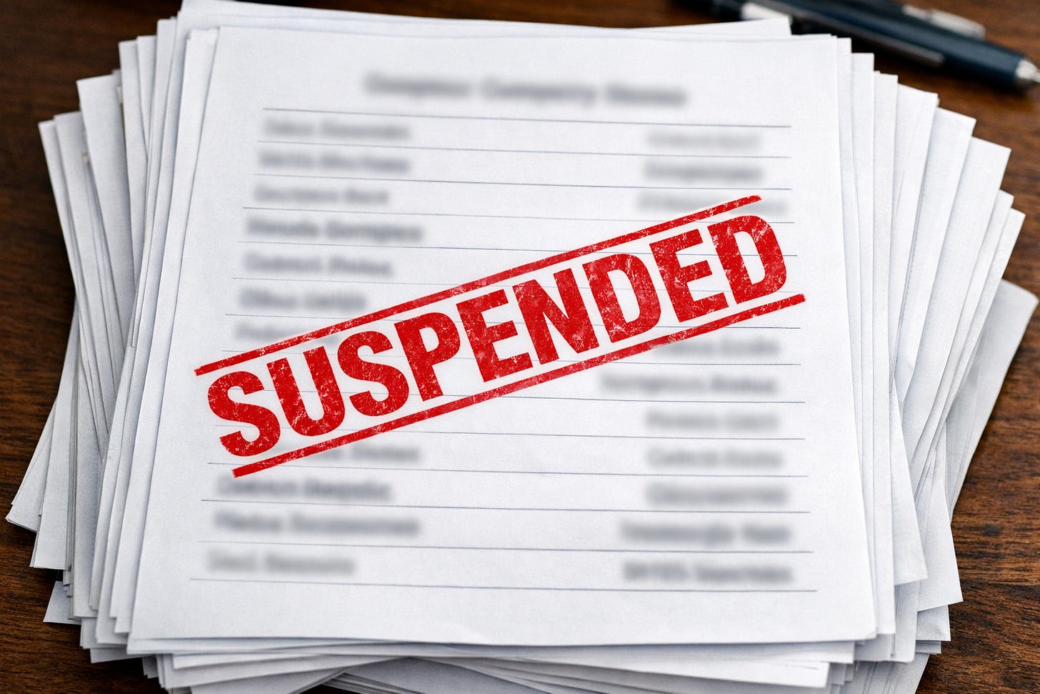 List Names Firms Suspended for Failing to Submit Their Response to the SBA's Data Call by the Deadline
